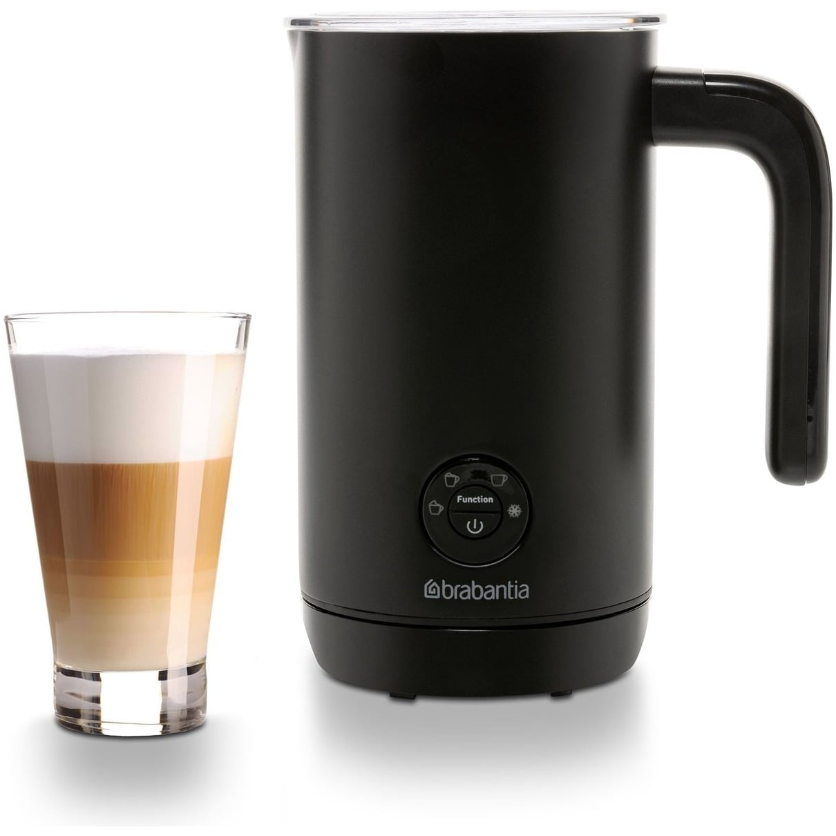 De Brabantia BBEK1047 Melkopschuimer Zwart is een veelzijdig en stijlvol apparaat waarmee je thuis eenvoudig professioneel melkschuim kunt creëren. Of je nu houdt van een romige cappuccino of een luchtige latte, met deze melkopschuimer geniet je altijd van perfect melkschuim. Voordelen van de Brabantia BBEK1047 Melkopschuimer * Vier instellingen voor warm en koud opschuimen * Eenvoudige bediening met twee knoppen * Ergonomisch ontwerp met transparant deksel * Antiaanbaklaag voor eenvoudige reiniging * Antislipvoetjes voor stabiel gebruik Veelzijdige 4-in-1 functionaliteit Met de vier verschillende instellingen kun je kiezen tussen warm, zacht schuim voor je latte of koud, stevig schuim voor je cappuccino. Met één druk op de knop krijg je precies het gewenste resultaat. Eenvoudige en intuïtieve bediening De melkopschuimer is ontworpen voor gebruiksgemak en werkt met slechts twee knoppen. Hierdoor kun je zonder ingewikkelde instellingen genieten van perfect