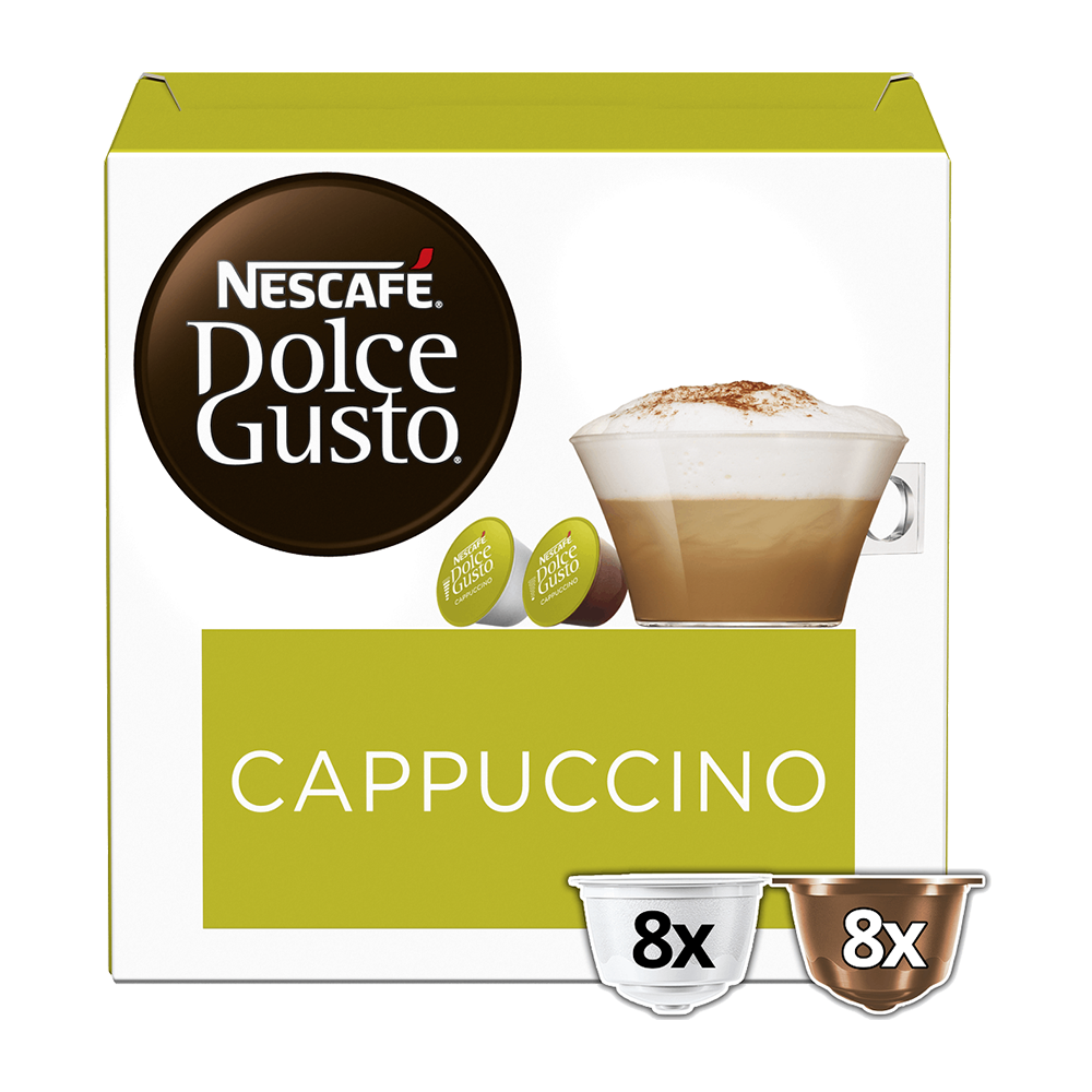 Deze Nescafé Dolce Gusto Cappuccino is gemaakt met een dark roast espresso en verwent je met een volle, romige melkschuimlaag.