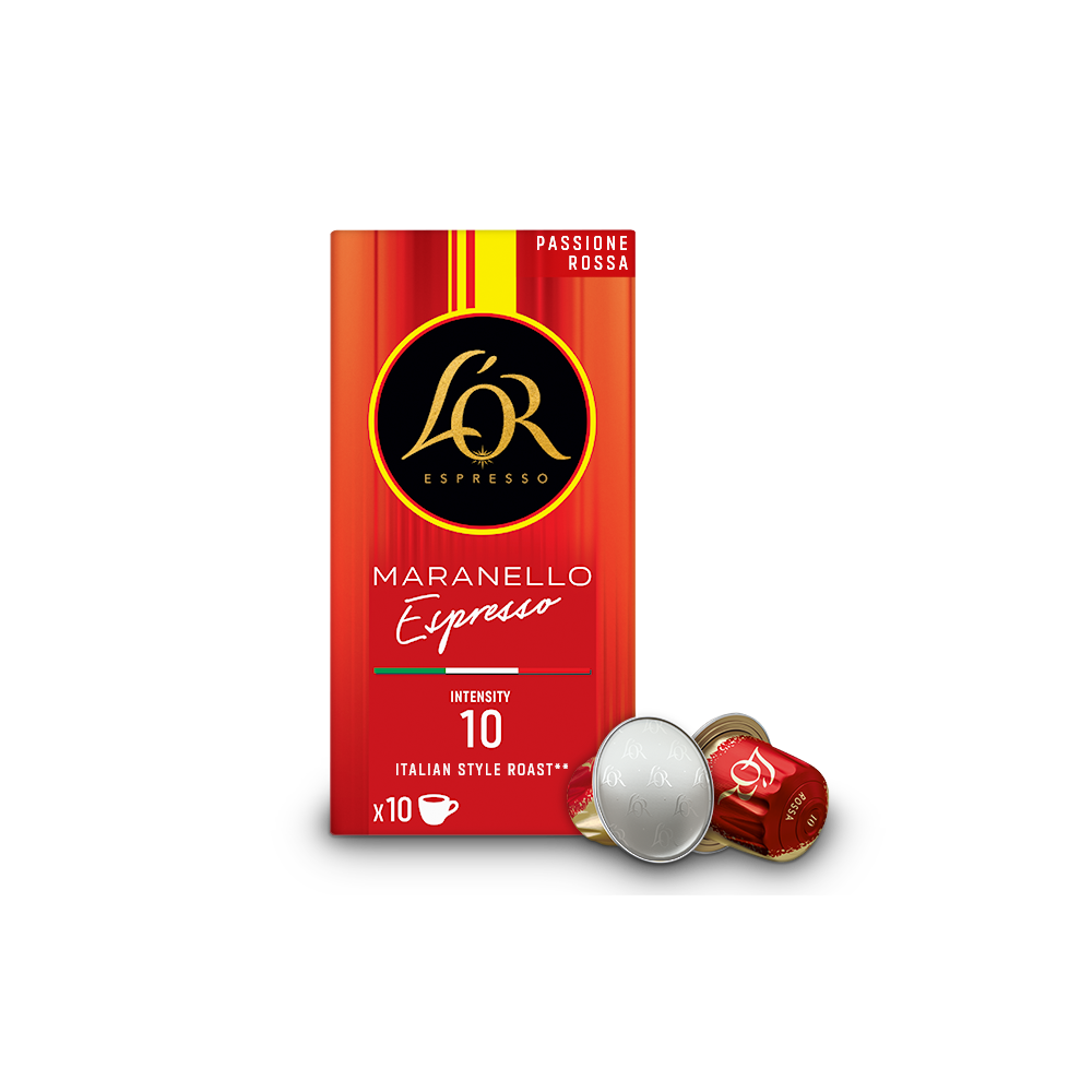 Met een intensiteit van 10 uit 12, biedt de L'OR Maranello de perfecte harmonie tussen kracht en 100% Arabica-finesse.
