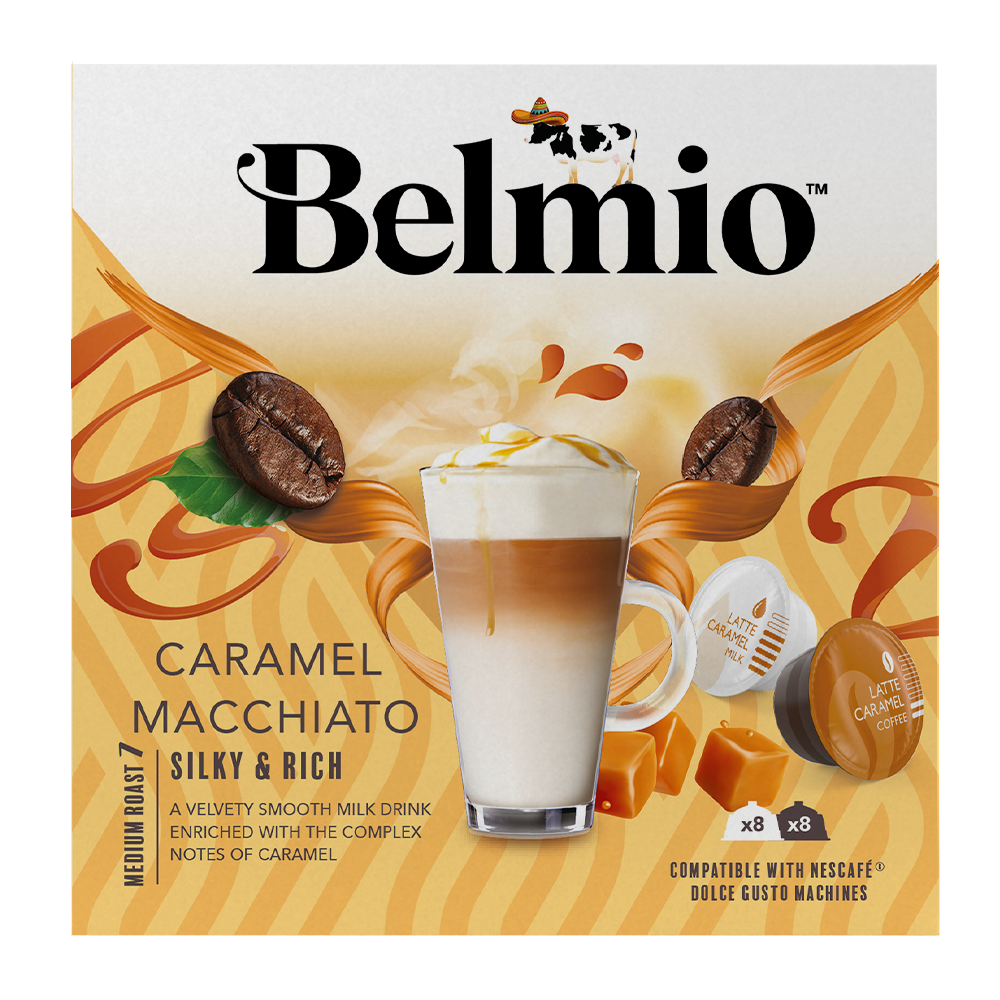 8 kopjes koffie. Belmio Caramel Macchiato is een heerlijke verwenner met romige melk en een zachte karamelsmaak. De 2 x 8 capsules zijn speciaal gemaakt voor levensgenieters.