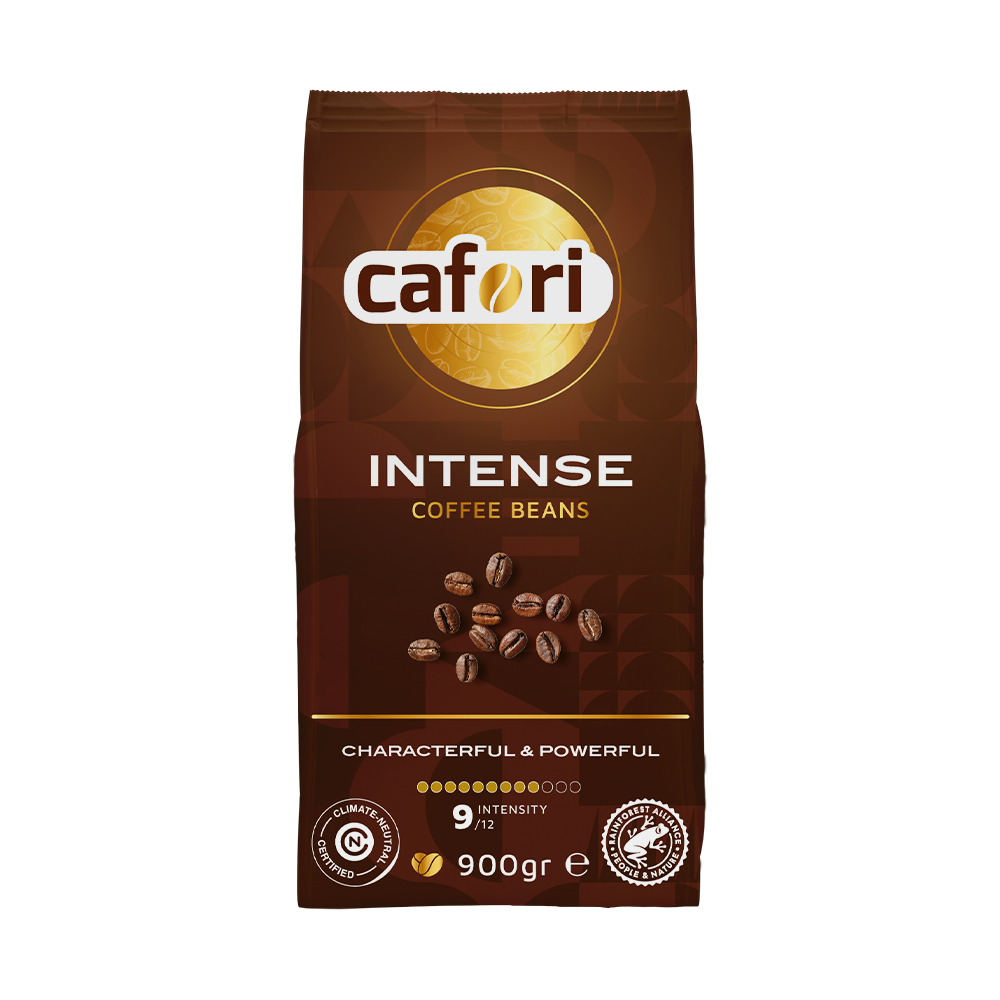 Intensiteit 10/12 – In de smaak van Cafori Intense herkennen onze koffieproevers nuances van nootmuskaat, chocolade, kruidnagel, vanille en walnoot. Wij zeggen: krachtige geur en smaak, lekker en pittig.