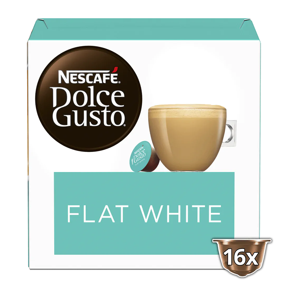 16 kopjes koffie. Deze Flat White combineert een sterke espresso met fluweelzachte melk. De zachte karameltoets is de kers op de taart. Smullen!
