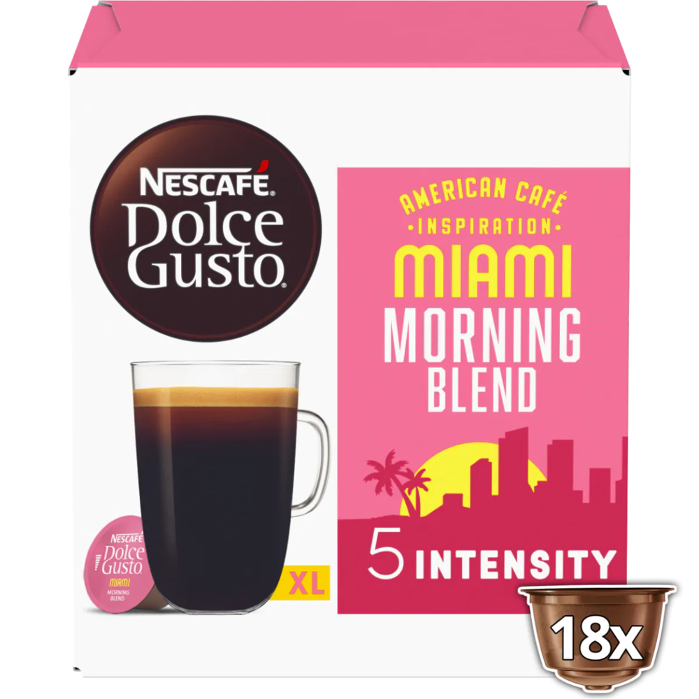 18 kopjes koffie. De Dolce Gusto Miami Morning Blend is een zijdezachte, gebalanceerde verwen-koffie. Ideale opstarter voor jouw ochtendroutine.
