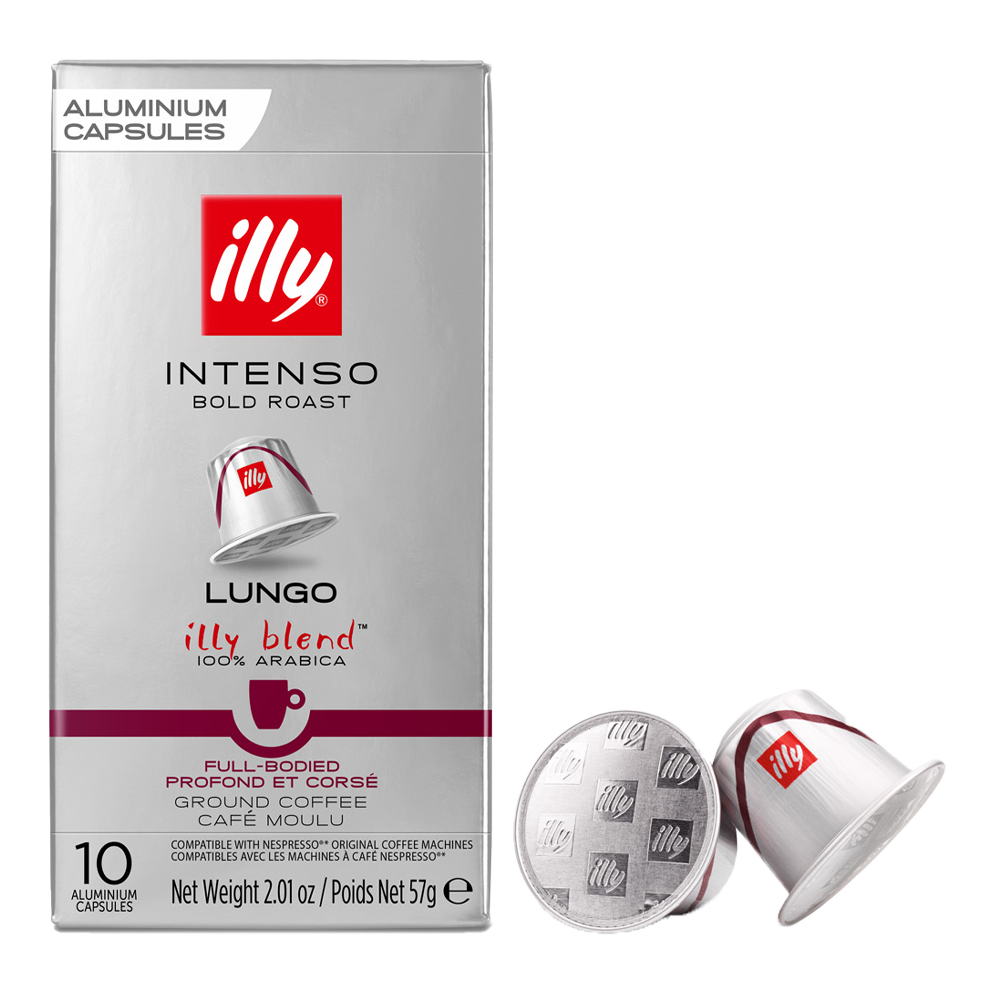 De intens gebrande illy Intenso Lungo koffie heeft een volle lungo-smaak met een subtiel bittertje, levendige tonen van cacao en gedroogd fruit.