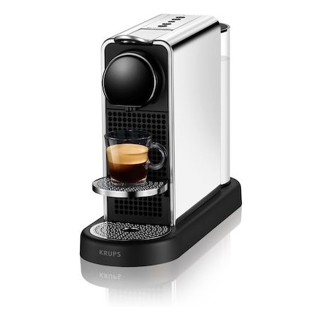 Met het Krups XN610D10 Citiz Platinum Nespresso apparaat maak je 4 verschillende koffierecepten. Met dit praktische koffieapparaat zet je espresso, lungo, americano én americano xl. Tevens kan je een kopje water opwarmen om bijvoorbeeld thee te maken. Heb je je kopje koffie gezet en zit je lekker te genieten op de bank? De machine zet zichzelf na 2 minuten in de eco-modus en gaat na 9 minuten zonder gebruikt te worden helemaal uit. Zo hoef jij hier niet zelf aan te denken en bespaar je ook nog eens energie in huis. Met de Krups – Nespresso koffiemachine maak je allerlei heerlijke recepten dankzij de veelzijdigheid die het apparaat, in combinatie met de heerlijke Nespresso cups, te bieden heeft. Genieten maar!