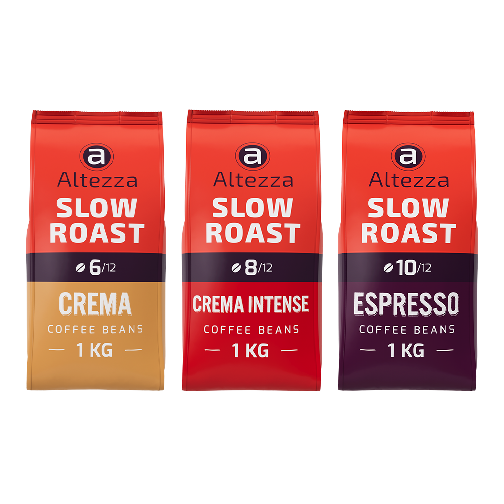 Dit Altezza Slow Roast Barista proefpakket neemt je mee op een culinaire reis door de smaaksensaties van langzaam gebrande koffiebonen. 3 smaken van elk 1 KG.