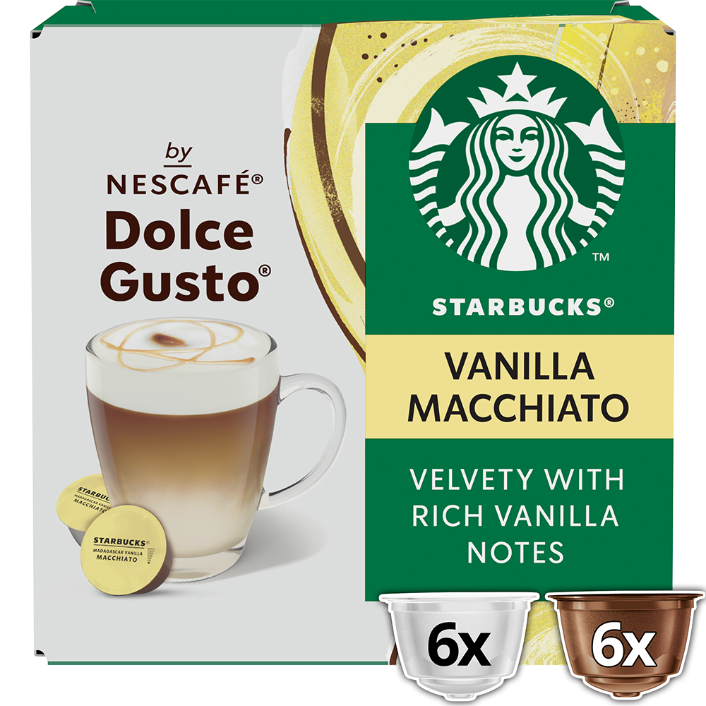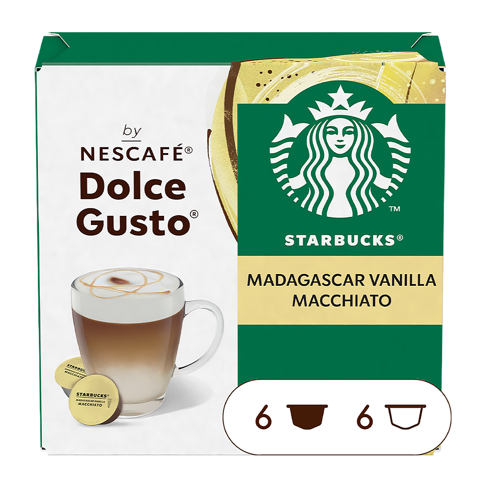 6 kopjes koffie. De Madagascar Vanilla Macchiato is gemaakt van een shot Starbucks Blonde® Espresso met een heerlijke blend van rijke, romige melk en vanillearoma uit Madagaskar.