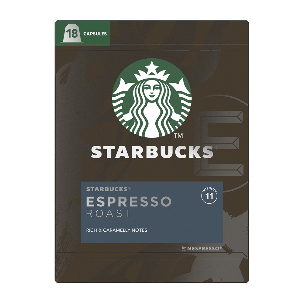 Geniet nu thuis van STARBUCKS® koffie met uw Nespresso® compatible machine. De Espresso Dark Roast is een speciale blend van bonen die lange tijd zijn geroosterd om een rijke, zachte koffie met karamelsmaak te krijgen. De sterke smaak van deze espresso contrasteert met die van melk, en vormt dus de perfecte basis om een een latte of cappuccino te maken.