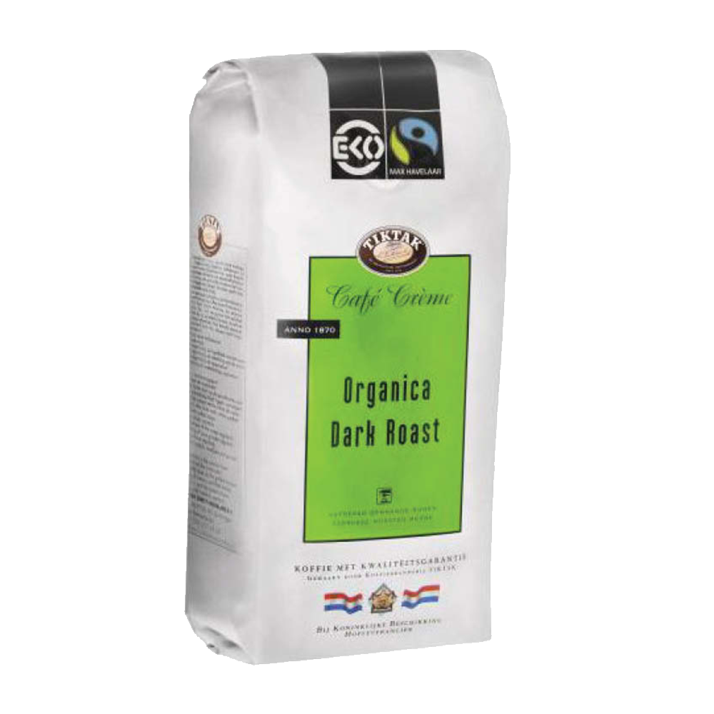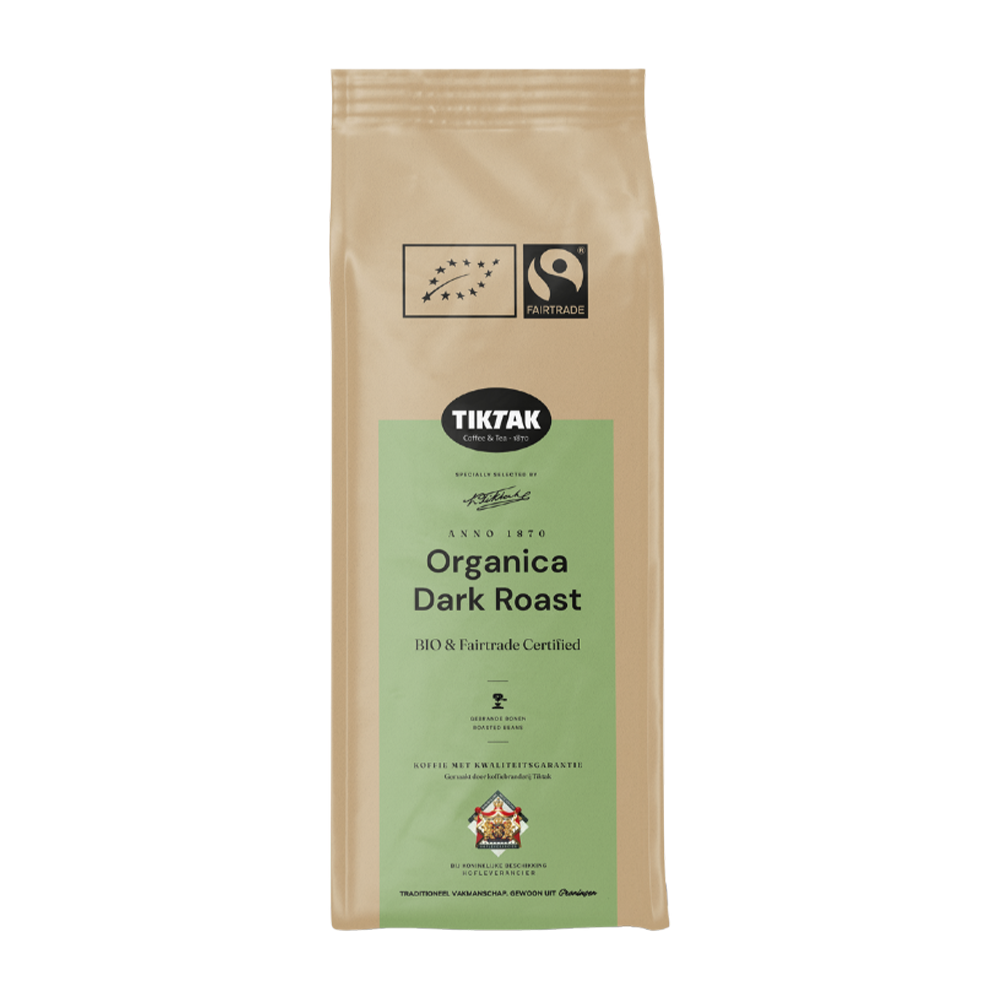 Met Tiktak Organica Dark Roast kiest je voor een melange van topkwaliteit! Afkomstig van biologisch verbouwde Arabica en Robusta koffiebonen.